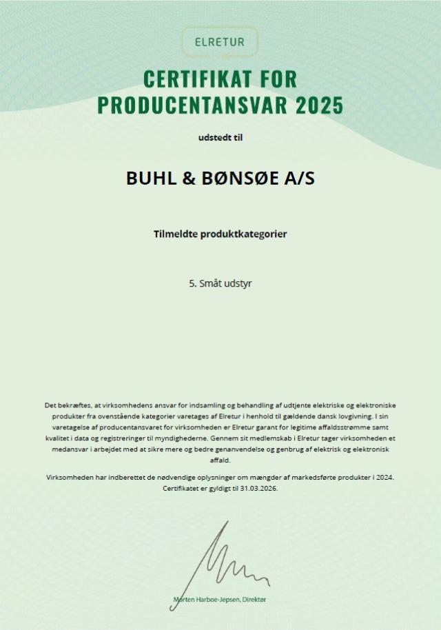 Buhl & Bønsøe har indgået et samarbejde med Elretur med det formål om at forbedre indsamlingen, genanvendelsen og genbrugen af udstyr, batterier og akkumulatorer.